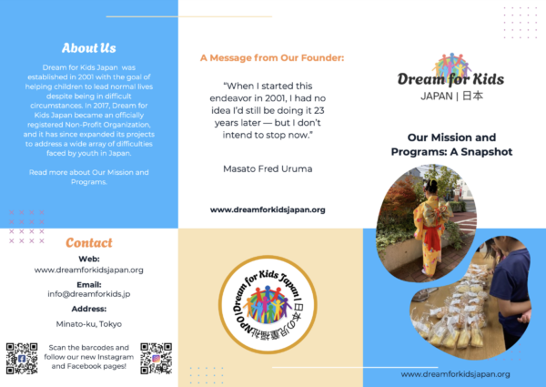 Dream for Kids Japan was established in 2001 and became an NPO in 2017.